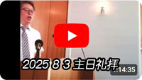 主日礼拝「イエス・キリストと出会う」 (ヨハネの手紙一1章1~4節)尾﨑公明 牧師 1:初めからあったもの、わたしたちが聞いたもの、目で見たもの、よく見て、手で触れたものを伝えます。すなわち、命の言について。――2:この […]