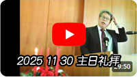 主日礼拝「キリストを信じ、互いに愛し合おう」 (ヨハネの手紙一3章19節~24節)尾﨑公明 牧師 19:これによって、わたしたちは自分が真理に属していることを知り、神の御前で安心できます、20:心に責められることがあろう […]